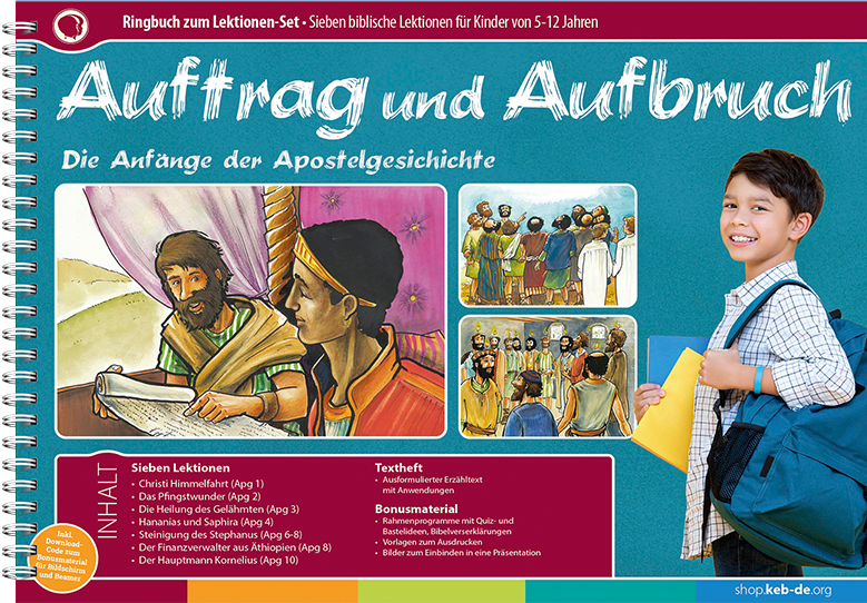 Lektionen-Set mit 5 biblischen LektionenWie der erste Band, so enthält auch dieses Lektionen-Set sowohl für fernstehende als auch für gläubige Kinder ermutigende und herausfordernde Wahrheiten und Anregungen für ihr Glaubensleben. Das Ziel dieser Lektionen ist, dass Kinder lernen, wie sie als Christen Schwierigkeiten überwinden können und wie Gott sie durch diese Probleme hindurch sicher ans Ziel bringt. Darüberhinaus werden gläubige Kinder zu einem missionarischen Lebensstil ermutigt.Durch die Lektionen – Siege über Satan (Apg 19) Aufruhr in Jerusalem (Apg 21-23) Zeuge vor Königen (Apg 23-26) Schiffbruch (Apg 27-28) Paulus vollendet den Lauf (Apg 28) – werden wir die Gelegenheit haben, den Kindern wichtige Wahrheiten über Gott sowie den Beginn, den Lauf und das Ziel als Christen zu vermitteln. Das Hauptaugenmerk liegt auf Gottes Versprechen, seiner Treue, der Mission und der Herausforderung, trotz Schwierigkeiten und entgegen aller Widerstände Christus zu bezeugen.Mit diesem Lektionen-Set erhalten Sie vielfältig einsetzbares Material für Kindertreffs, Online-Live-Kinderstunden, Kindergottesdienste, Kinderwochen oder -freizeiten. Lektionen-Set als Downloaversion (Download-Code) Wichtiger Hinweis zum Download-Kauf: Mit Kauf dieses Sets erhalten Sie eine PDF-Datei mit dem Download-Code in Ihrem Kundenkonto unter dem Punkt Sofortdownloads. Laden Sie diese Datei herunter und gehen Sie dann auf www.keb-de.org/Download und geben Sie den Code dieses Artikels ein. Sie können dort alle Teile des Lektionen-Sets (Text, Rahmenprogramme, Bilder, Präsentationen etc.) herunterladen. Wir möchten Sie darauf hinweisen, dass Sie den gewünschten Artikel bei Download-Kauf ausschließlich in digitaler Form erhalten. Um Texte, Vorlagen oder Bilder auf Papier zu verwenden, ist in diesem Fall ein eigener Drucker nötig, mit dem Sie die PDF-Dateien bzw. einzelne Seiten davon zu Hause oder in Ihrer Gemeinde ausdrucken können. Blättern Sie hier durch die Leseprobe des Textheftes oder laden Sie sich die Leseprobe herunter.