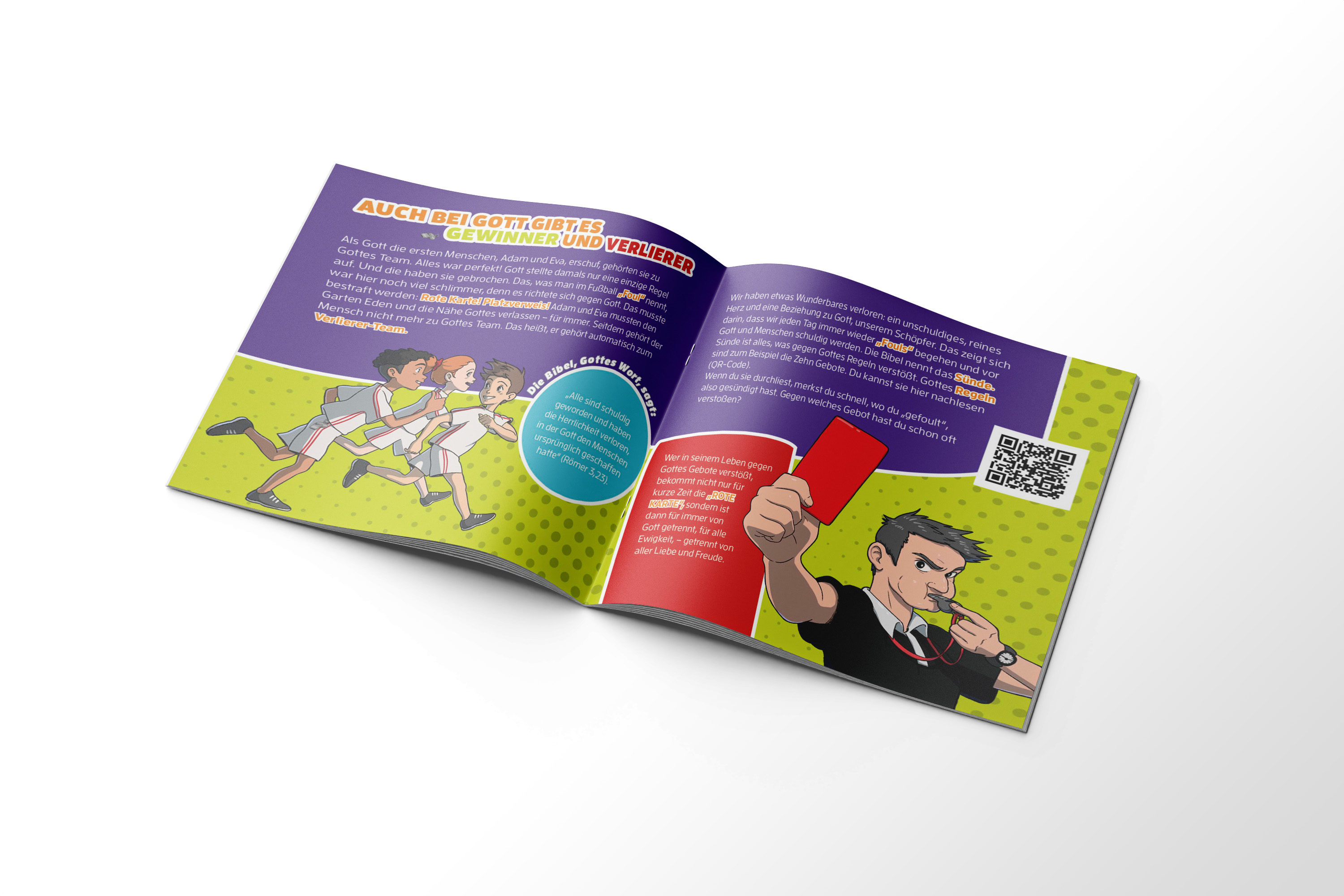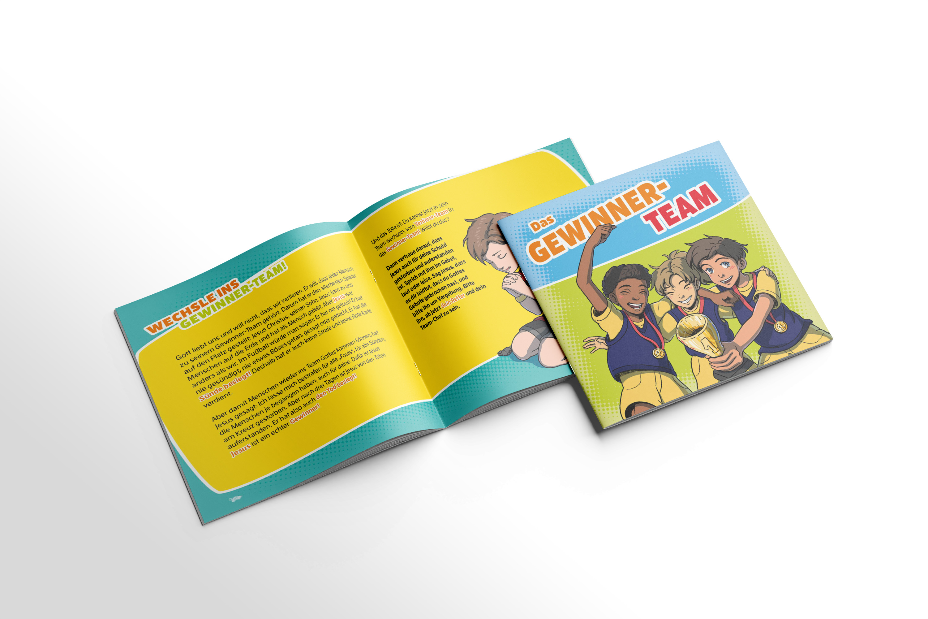 In diesem Heft dreht sich alles um den Wechsel vom Verlierer-Team – in dem wir alle seit Adam und Eva spielen – zum Gewinner-Team mit Jesus als Team-Chef. Mit Hilfe von Begriffen aus der Welt des Fußballs erfahren die Kinder, wie sie in Gottes Team, das Gewinner-Team wechseln können, wie das Leben im Gewinner-Team aussieht und was sie dort brauchen. Pfiffige Illustrationen und interessante Rätsel lockern den Text auf. Das Heft ist ideal zum Verteilen an Jungen und Mädchen ab 10 Jahren, z. B. vor anstehenden Fußball-Events.